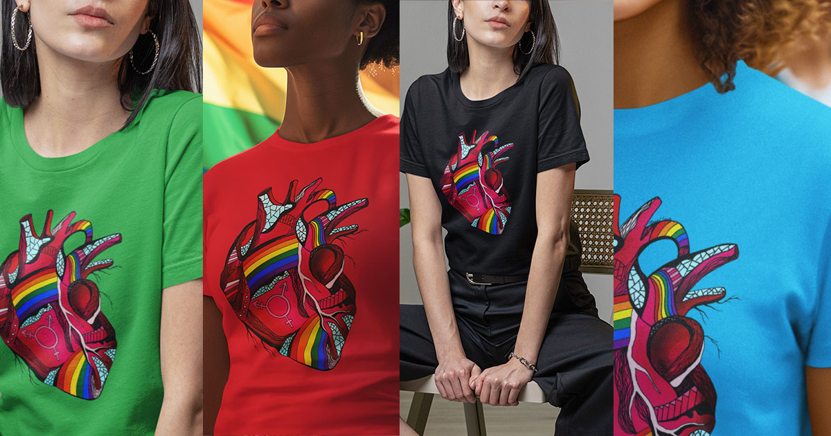 4 Colorful Pride Shirt Ideas Featuring My Unique Heart Artwork 🌈