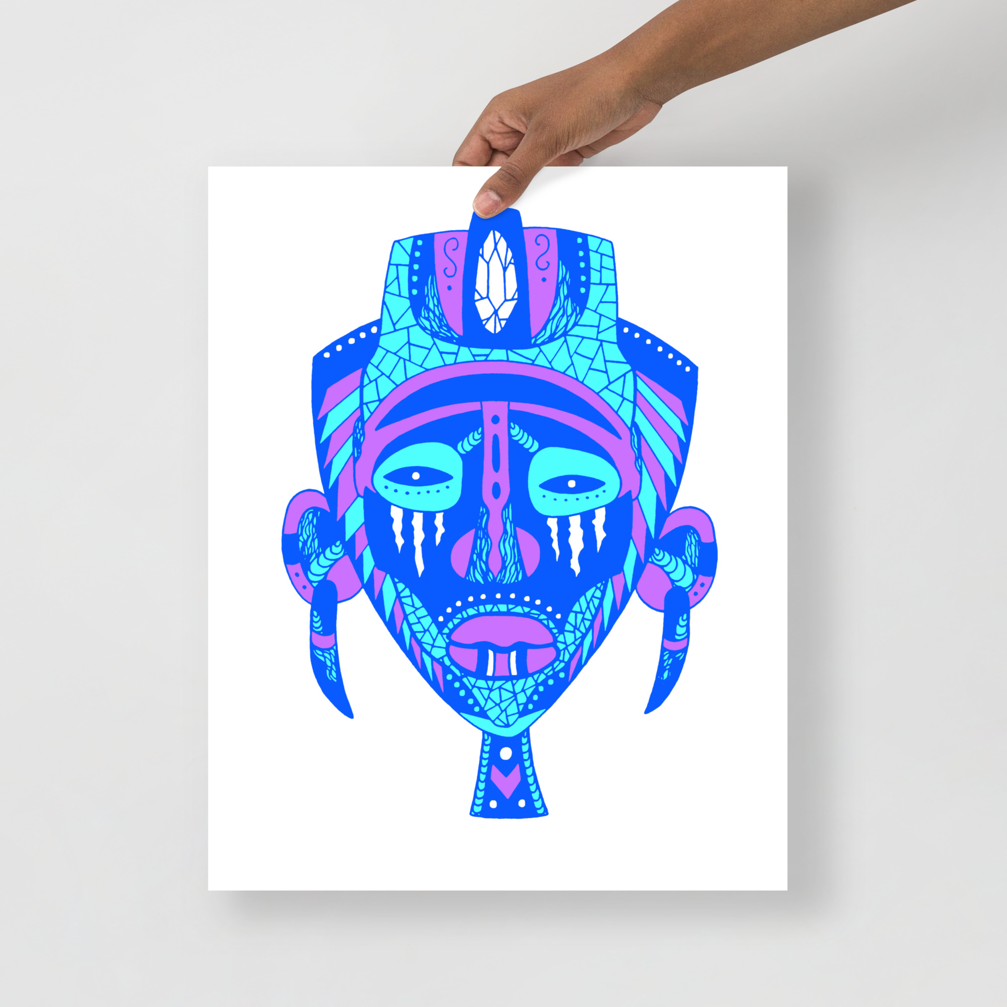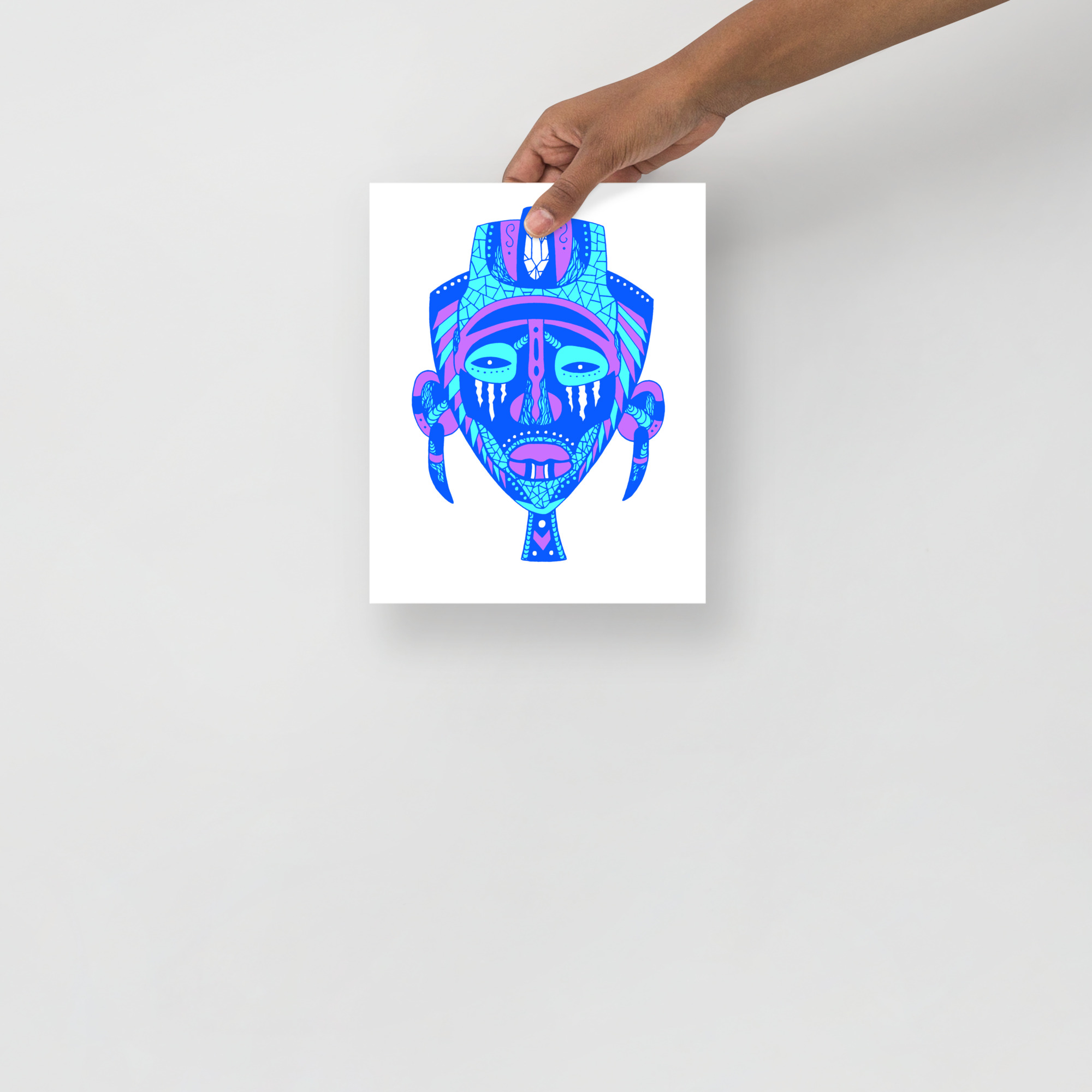 Blue Art Print “African Mask 95 of 100” Blue Drawing Art