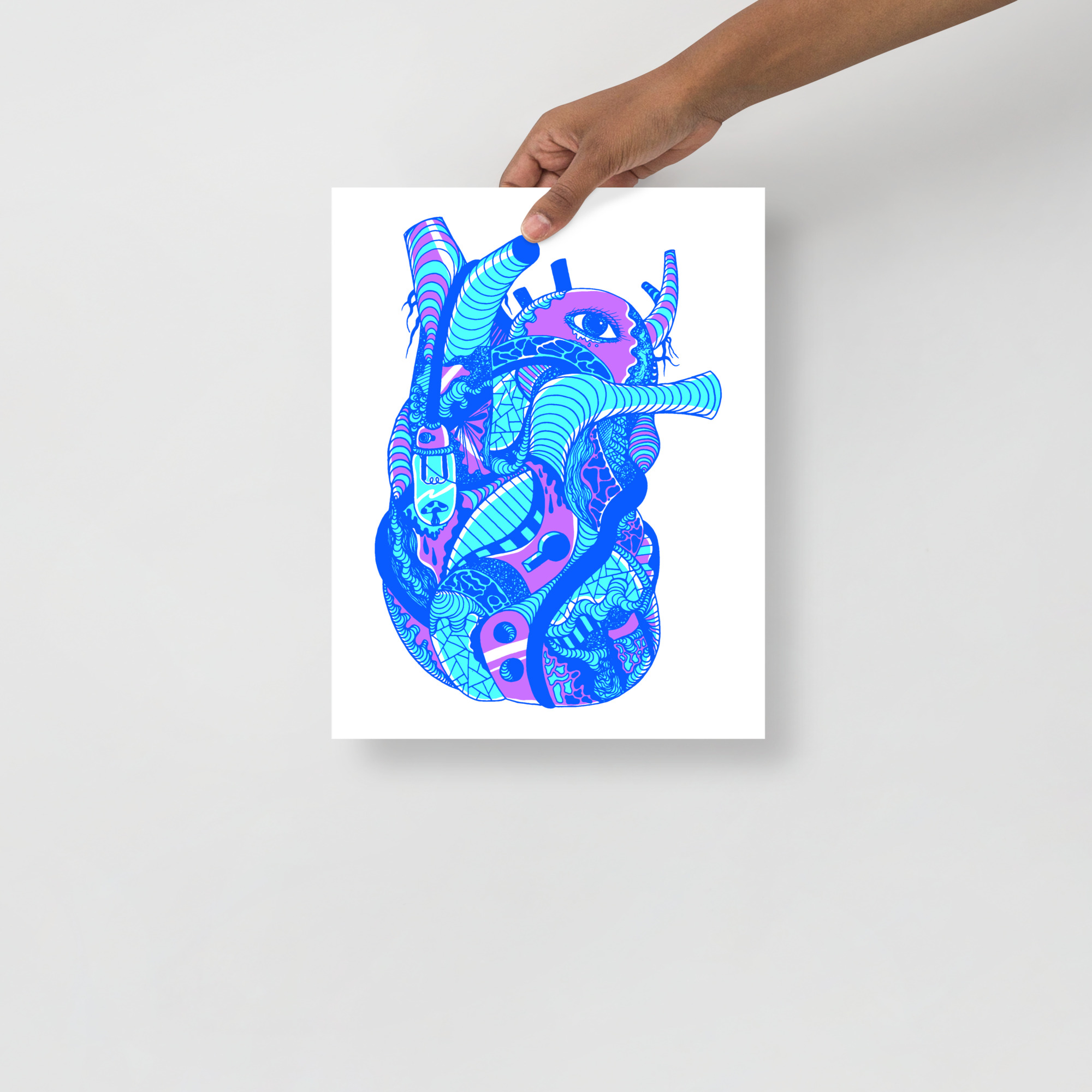 Blue Art Print “Blue Light Heart” Blue Drawing Art