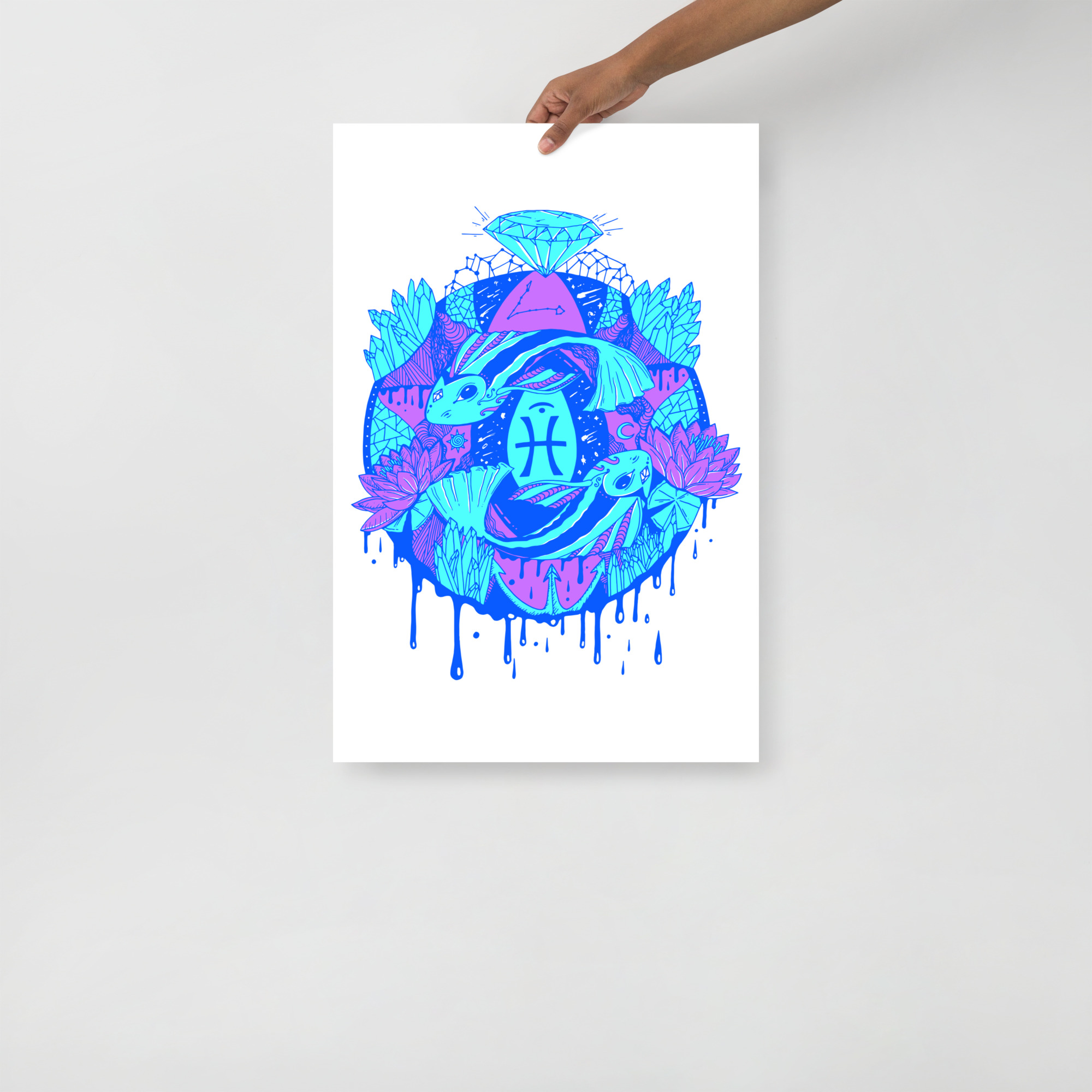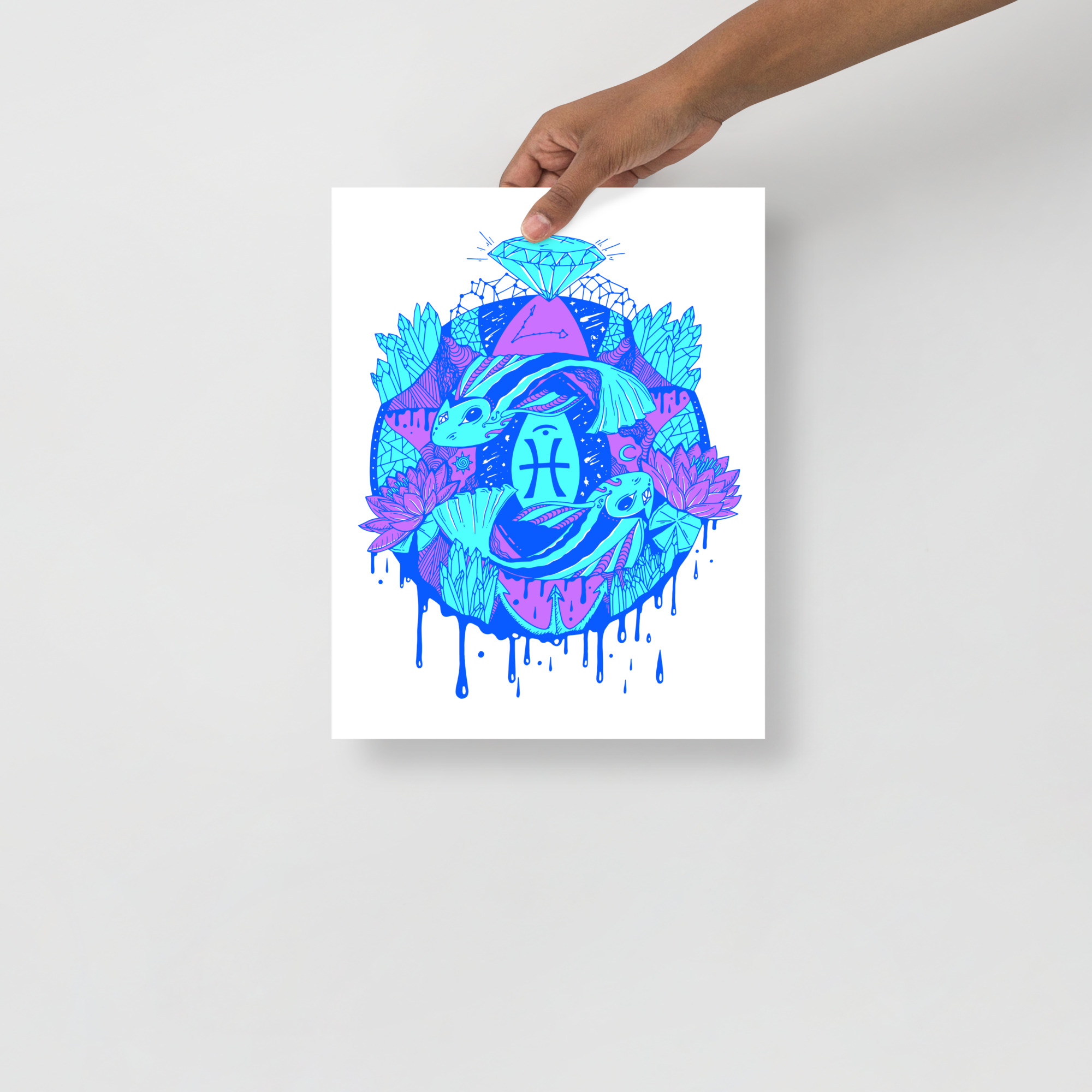 Blue Art Print “Mystic Pisces Motion” Blue Drawing Art
