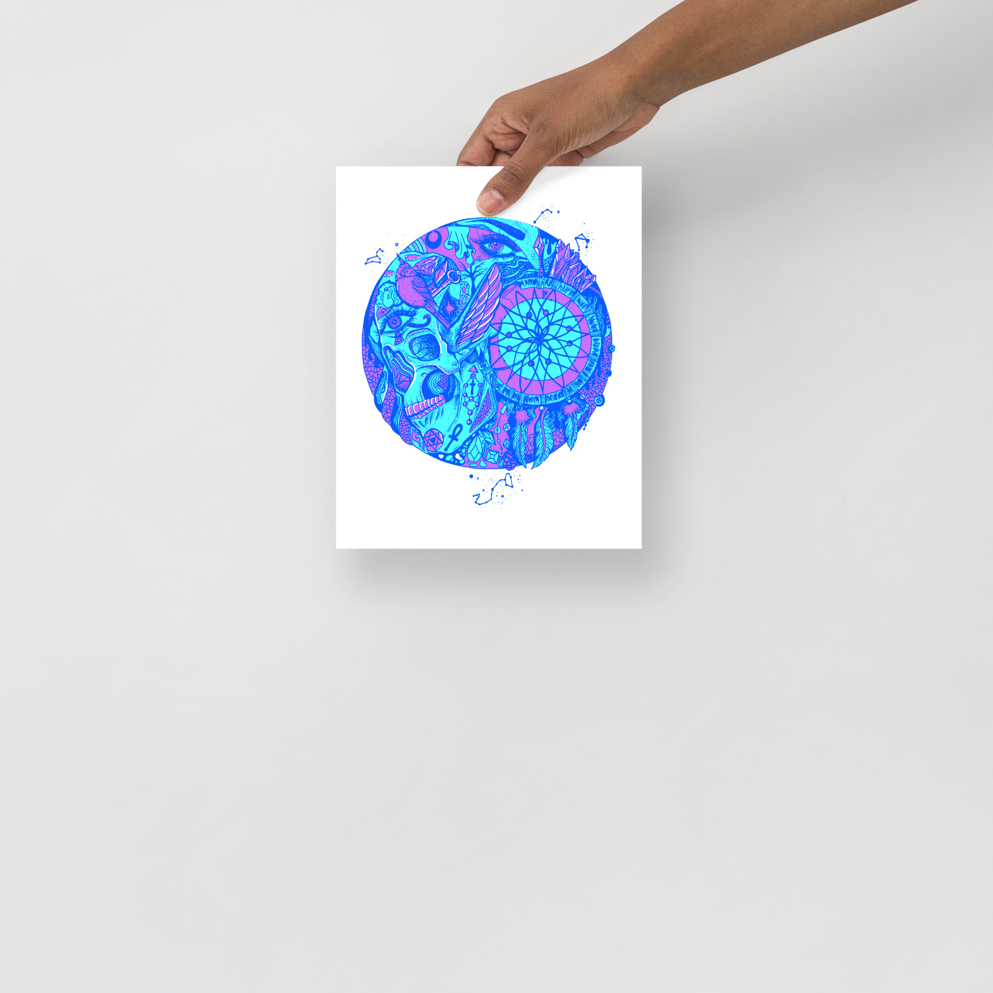 Blue Skull Artwork “Skull and Dreamcatcher Circle” Skull Drawing