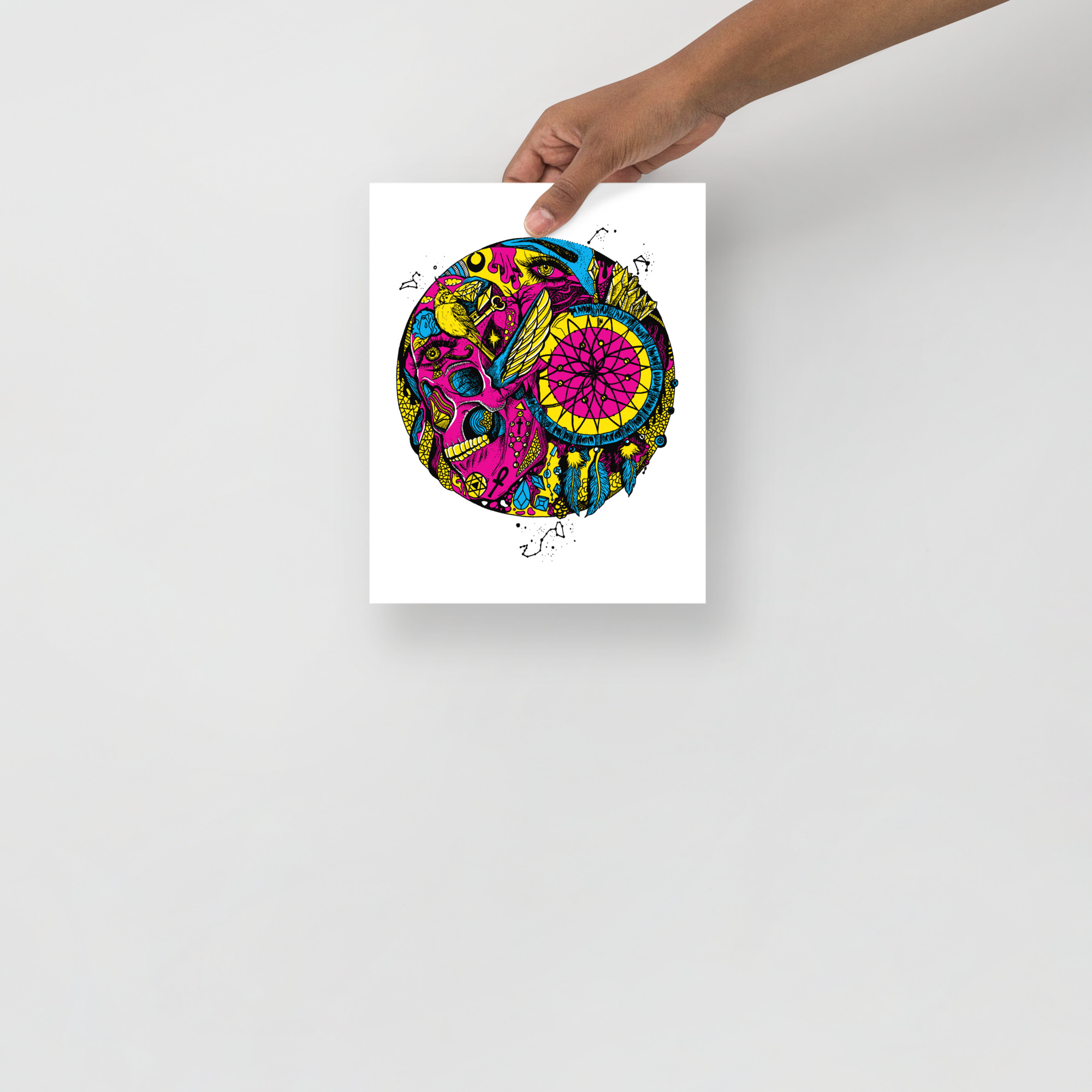 CMYK Pink Skull Artwork “Skull and Dreamcatcher Circle” Skull Drawing