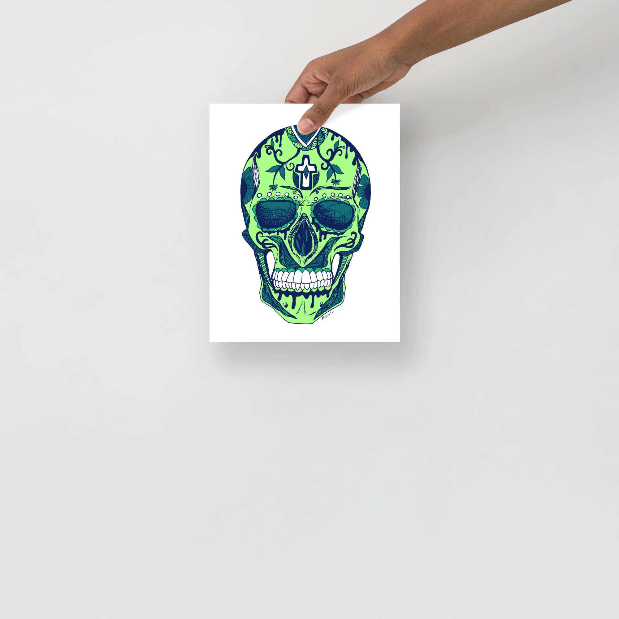 Green Day of the Dead Skull Artwork “Los Muertos” Skull Drawing
