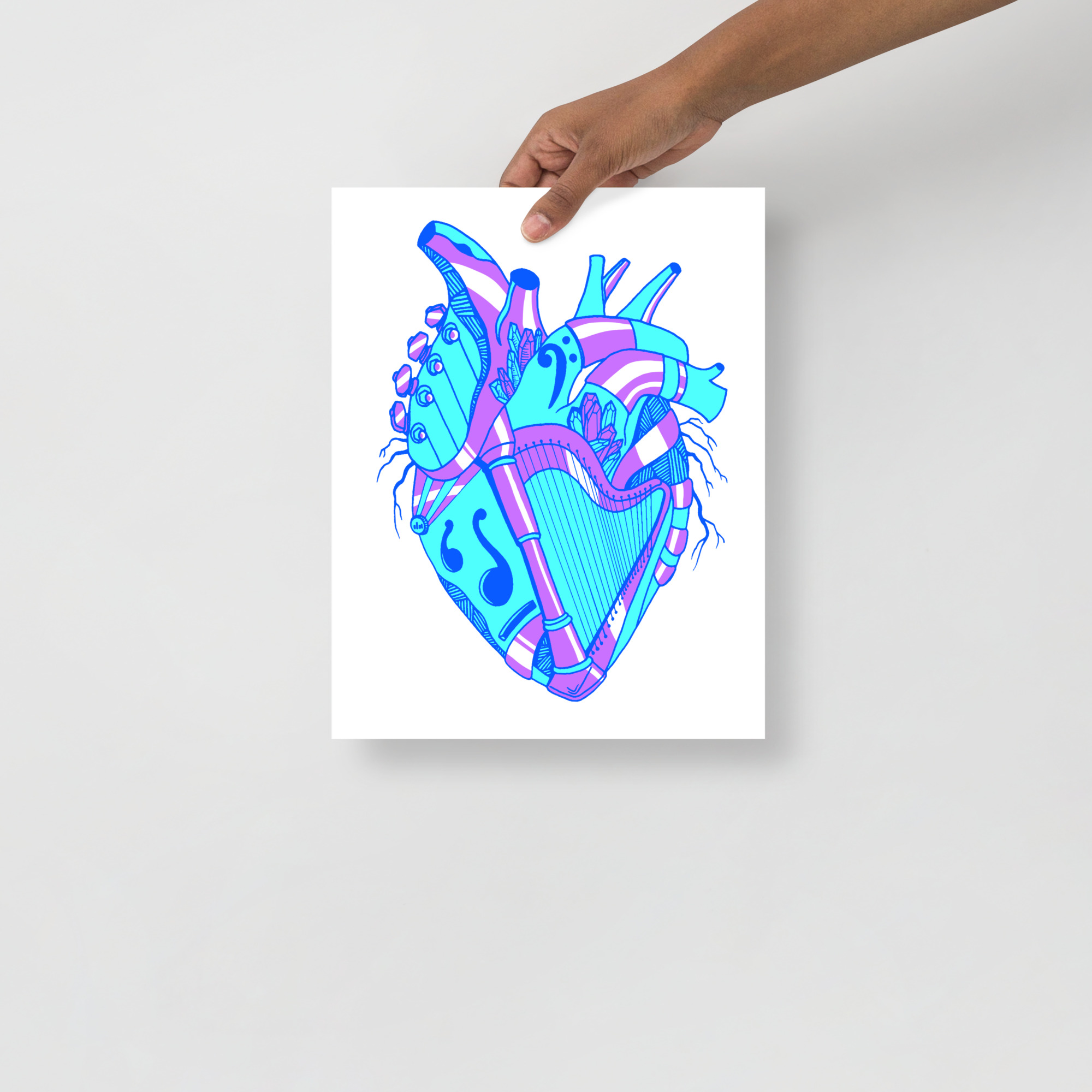 Heart Drawing “Musical Heart No. 2” Anatomical Heart Art (Blue)