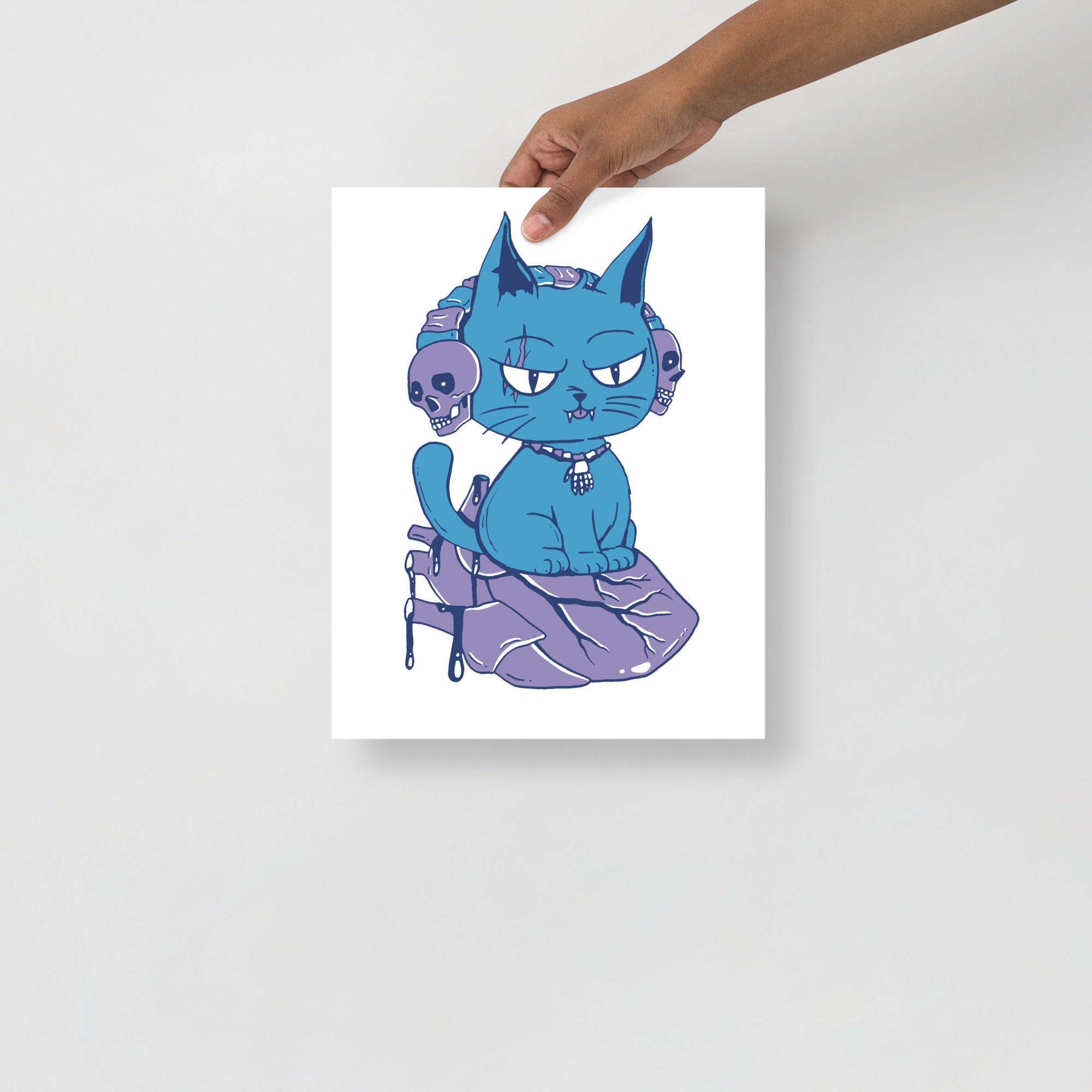 Mountain Blue Cat Drawing “Wicked Cat on a Heart” Cat Art Print
