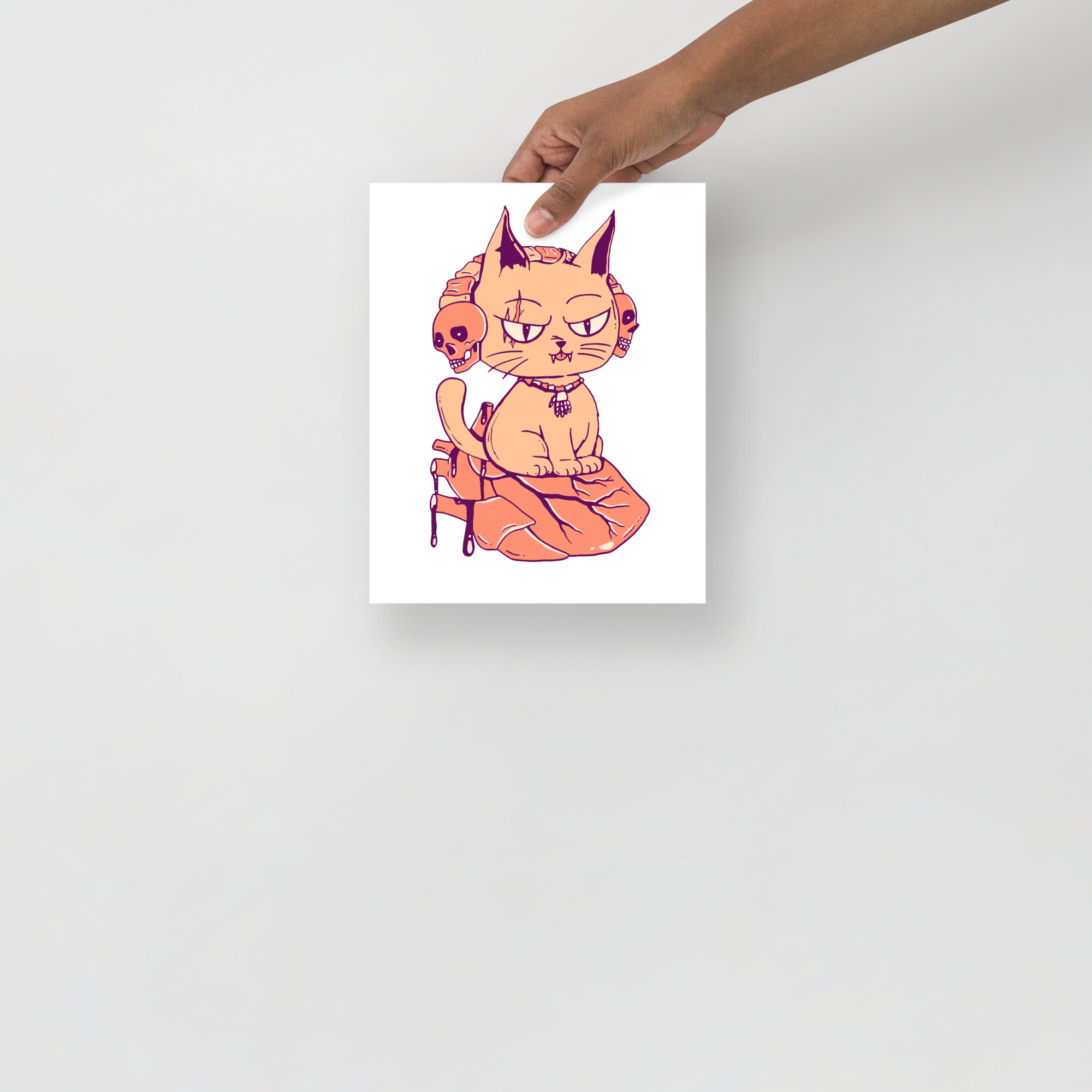 Peach Cat Drawing “Wicked Cat on a Heart” Cat Art Print