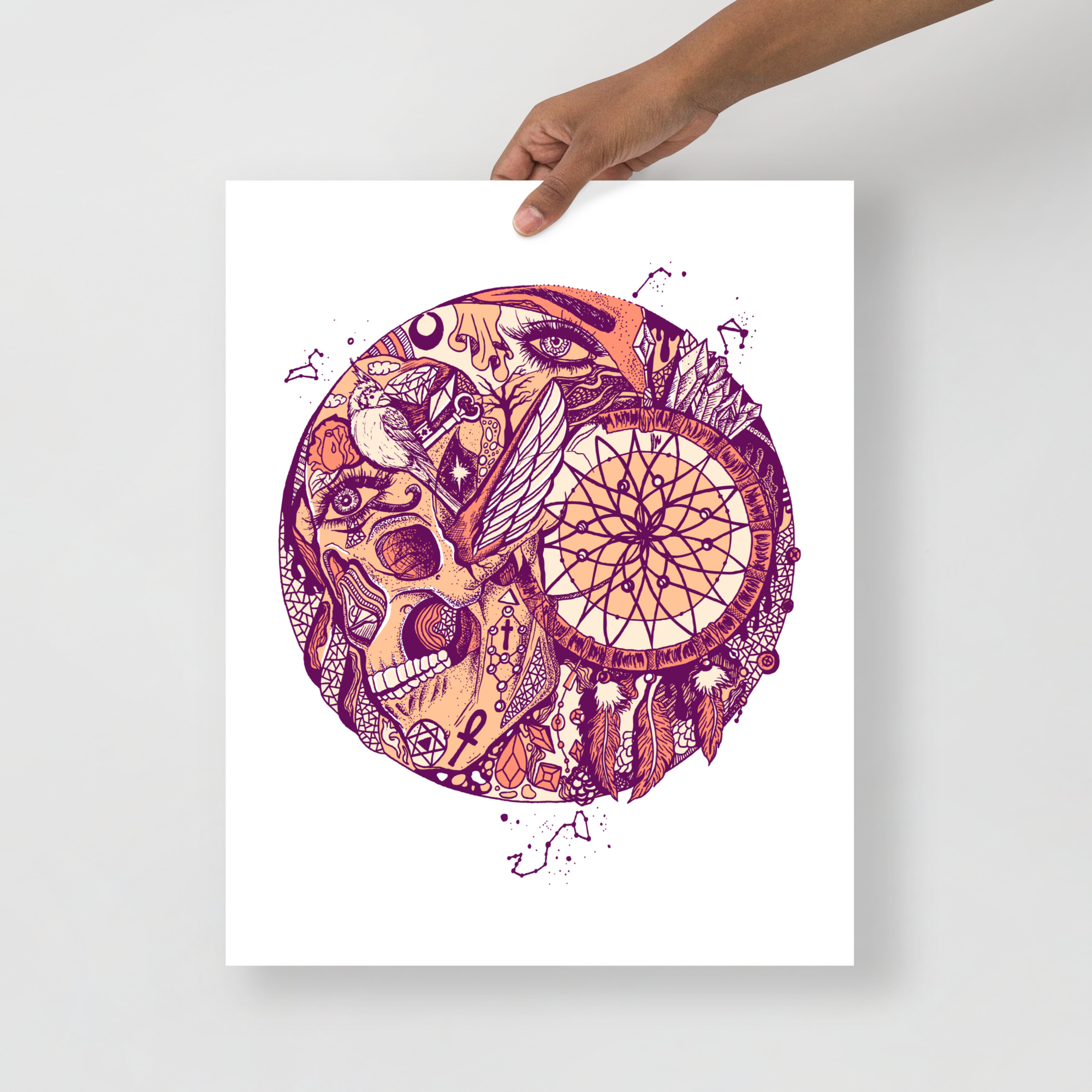 Peach Skull Artwork “Skull and Dreamcatcher Circle” Skull Drawing