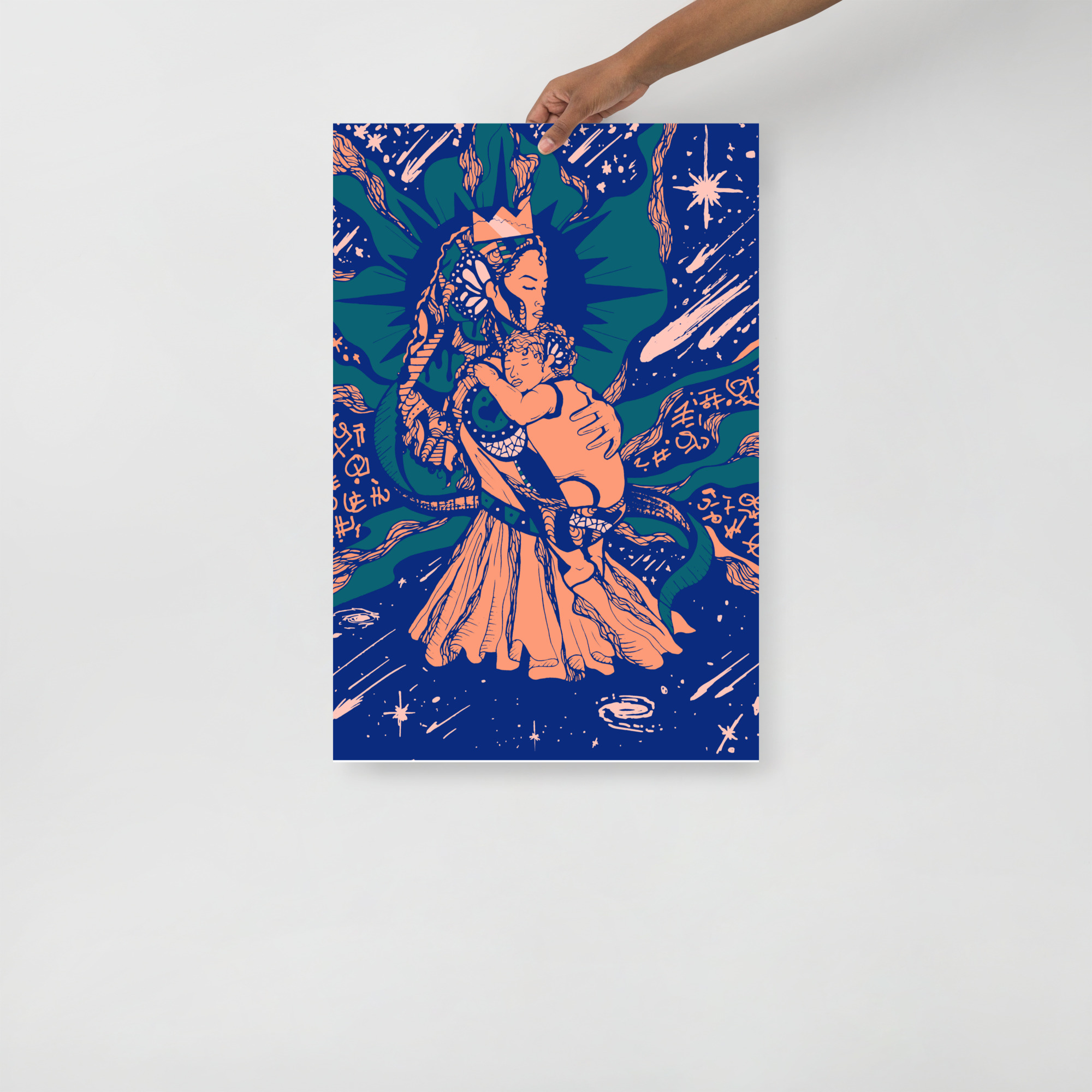 Pink Mom Art Drawing “Mother of Moon” Art for Mom