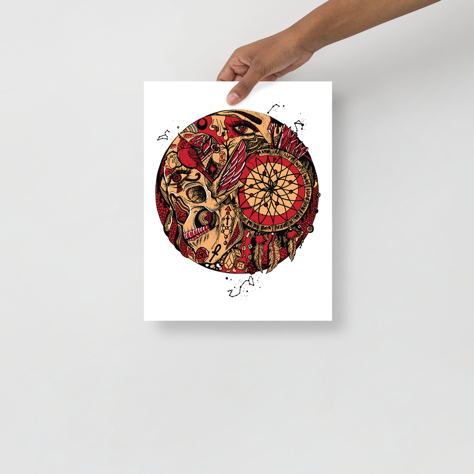 Royal Red Skull Artwork “Skull and Dreamcatcher Circle” Skull Drawing