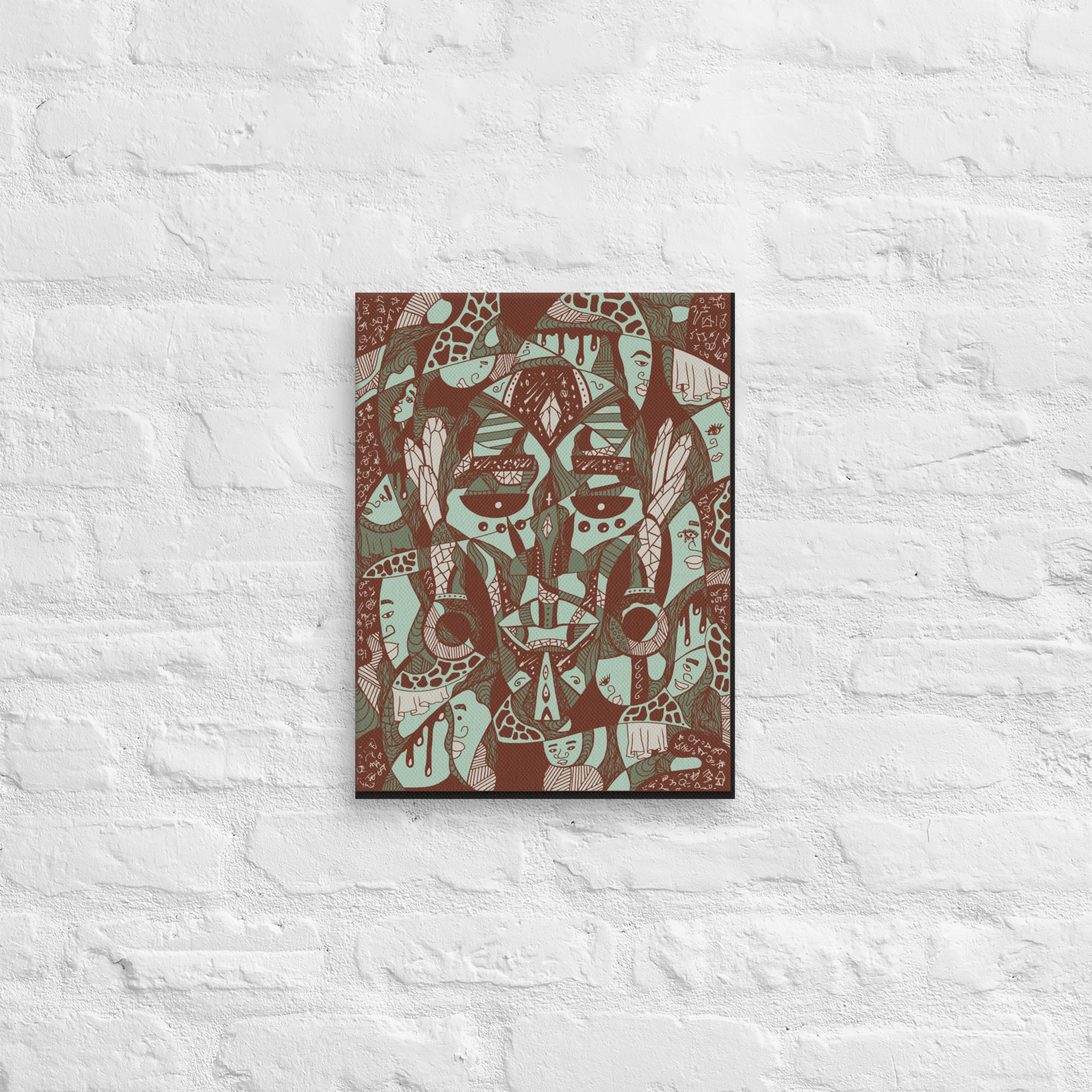 Sage Green Afrocentric Art “Atok and 12 Tribe Chiefs” African Mask Art