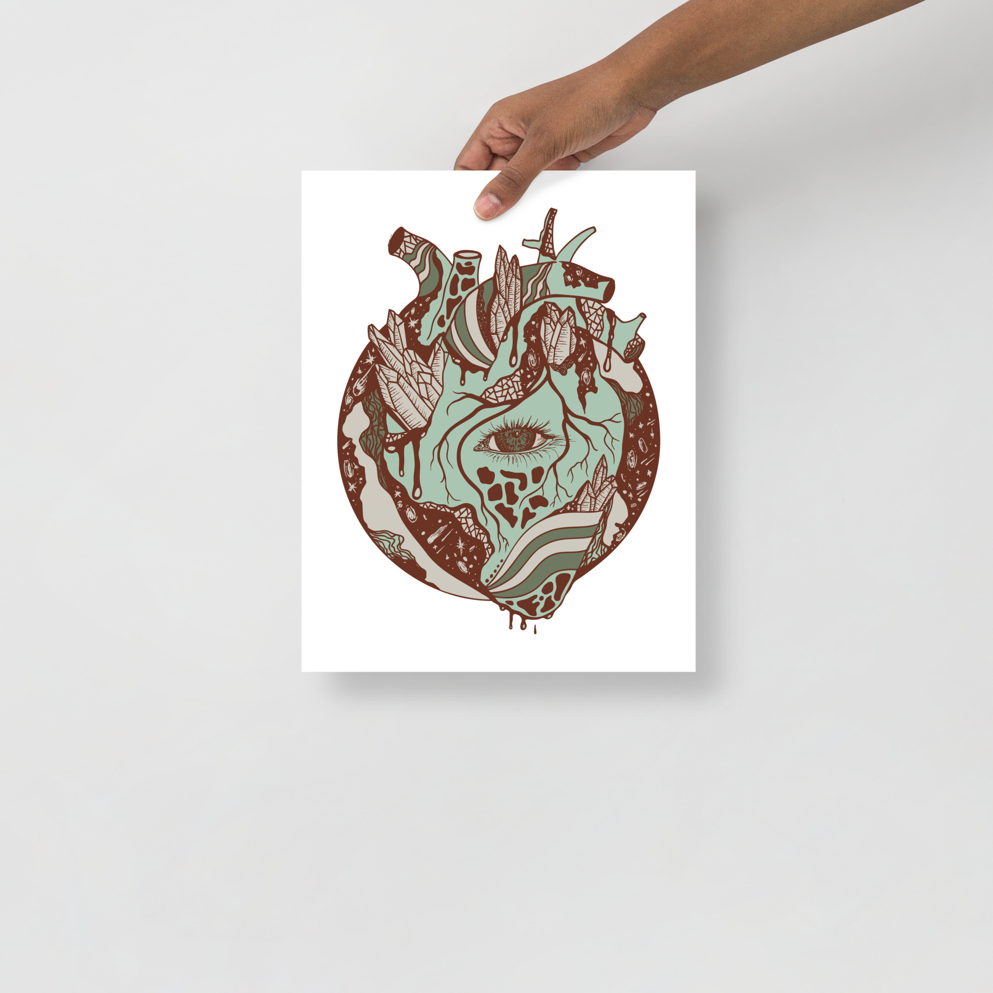 Sage Green Heart Drawing “Cosmic Heart” Anatomical Heart Art Print