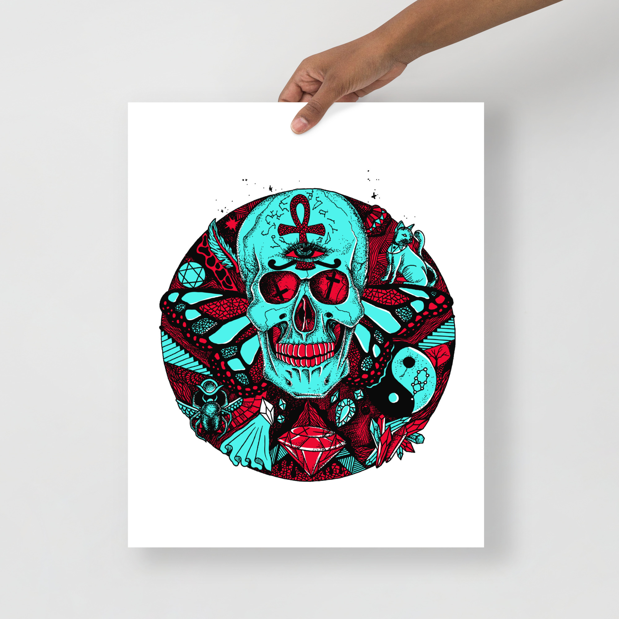 Turquoise Red Skull Artwork “Circle of Humanity” Skull Drawing