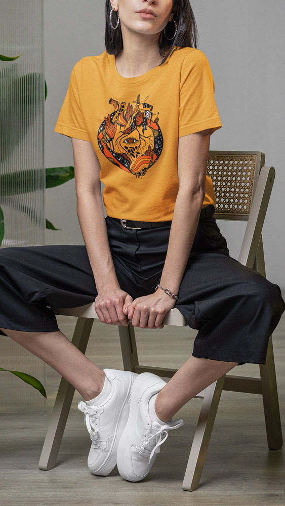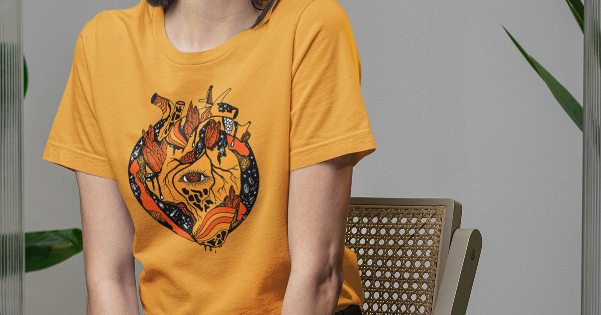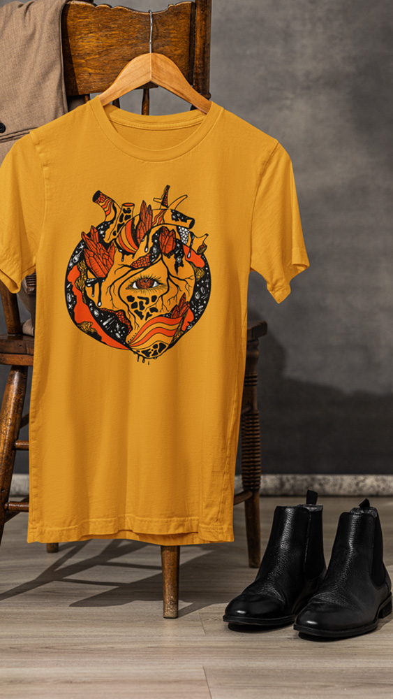 Get your cosmic heart black and orange t-shirt here] and wear your infinite nature proudly.